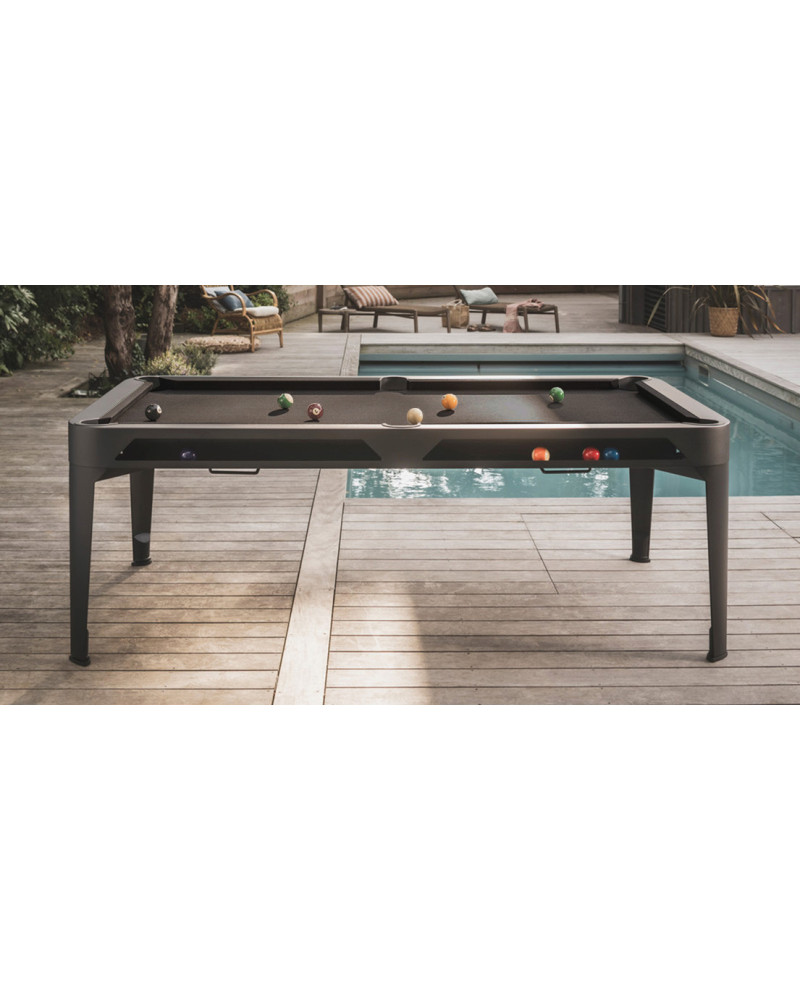 Polyvalente et ingénieuse, la table de billard Hyphen se transforme facilement en table à manger grâce à ses plateaux amovibles (en option). En quelques instants, elle devient un véritable mobilier décoratif et convivial pour vos repas, apéritifs ou moments de partage en famille et entre amis.