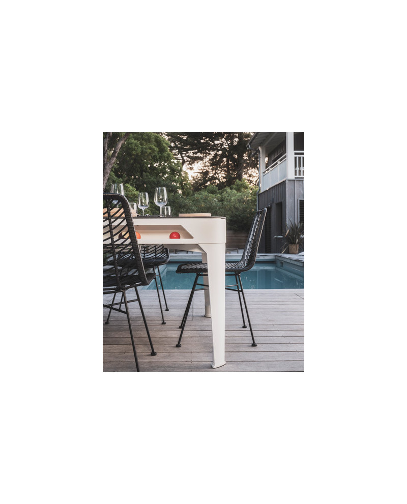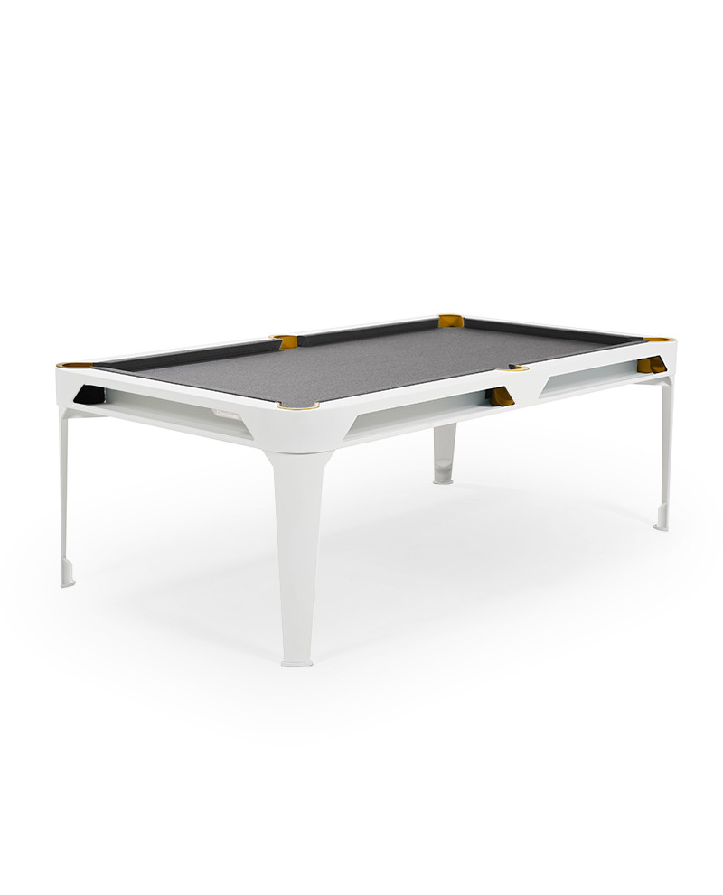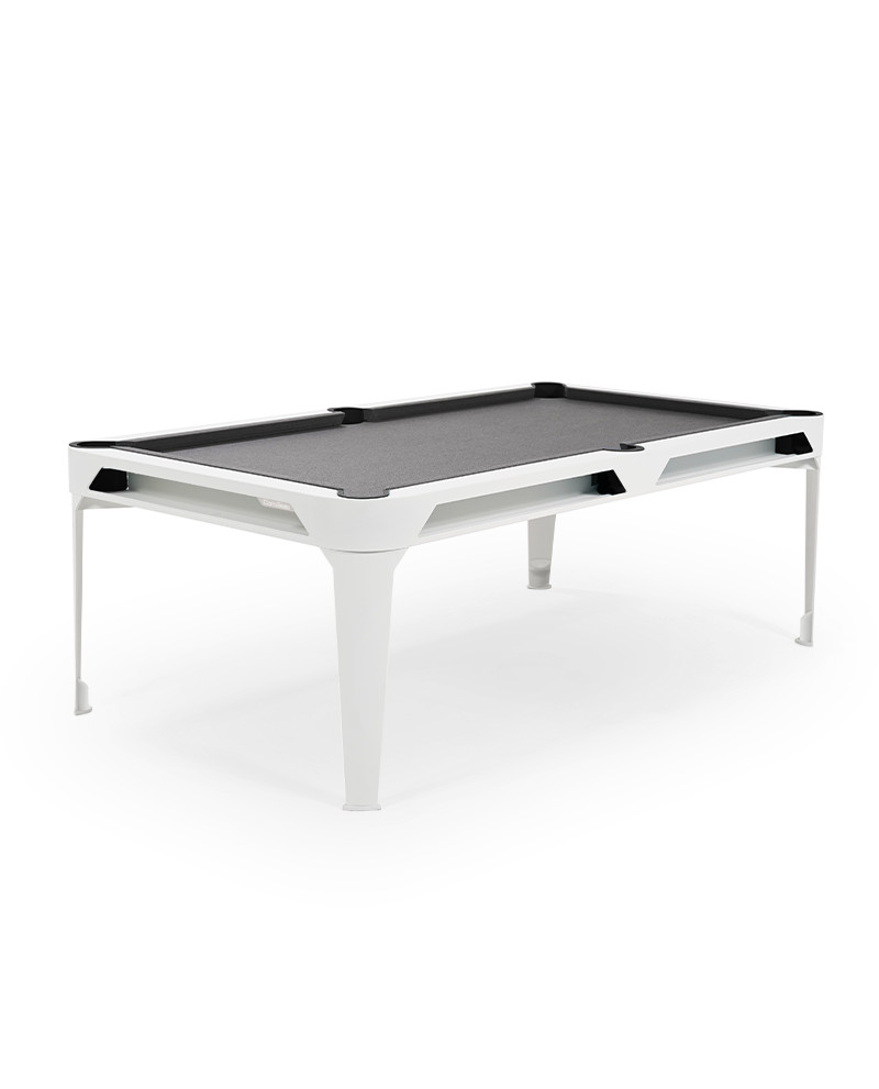 Conçu pour un usage intérieur et extérieur, le billard Hyphen blanche a été testé dans des conditions extrêmes. Résistant aux chocs, à la pluie et aux variations de température, il conserve toutes ses qualités au fil des saisons. Sa structure en acier blanc reçoit un traitement anticorrosion de haute qualité, tandis que le tapis déperlant assure un roulement de bille parfait et un entretien facile, même après une exposition prolongée à l’extérieur.