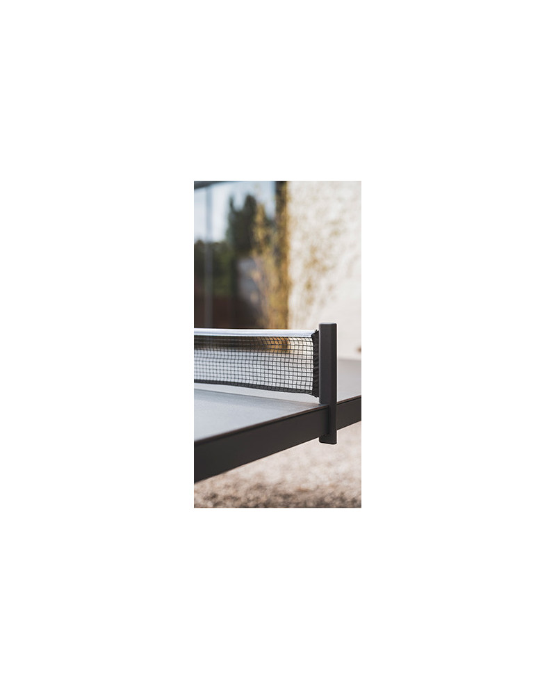 Polyvalente, la table Hyphen se convertit facilement en table de jardin en retirant simplement le filet. Sa surface élégante et sa conception équilibrée en font une véritable table design pour vos repas ou moments de détente en extérieur.