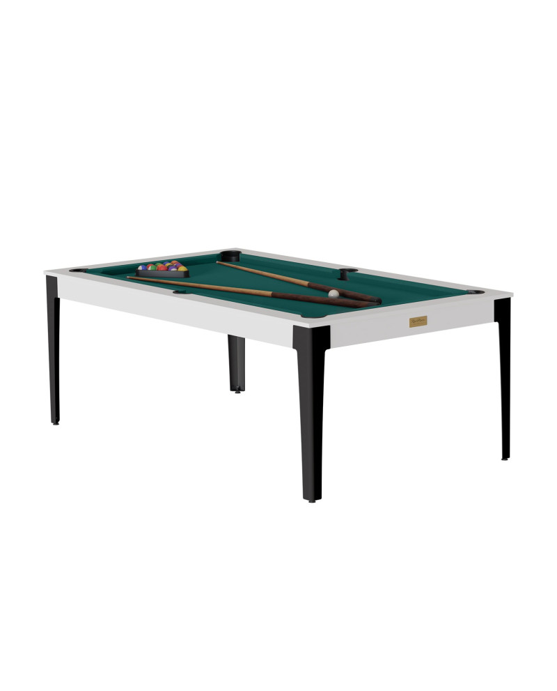 Table billard convertible René Pierre Elan Blanc brillant pieds noirs