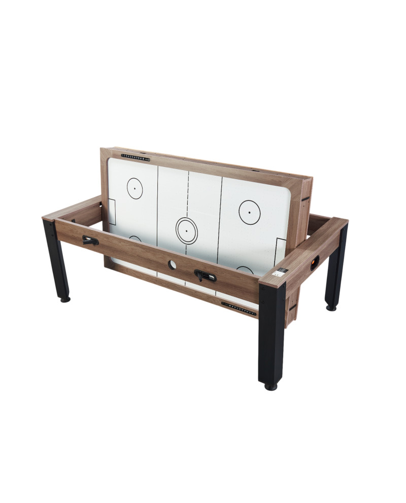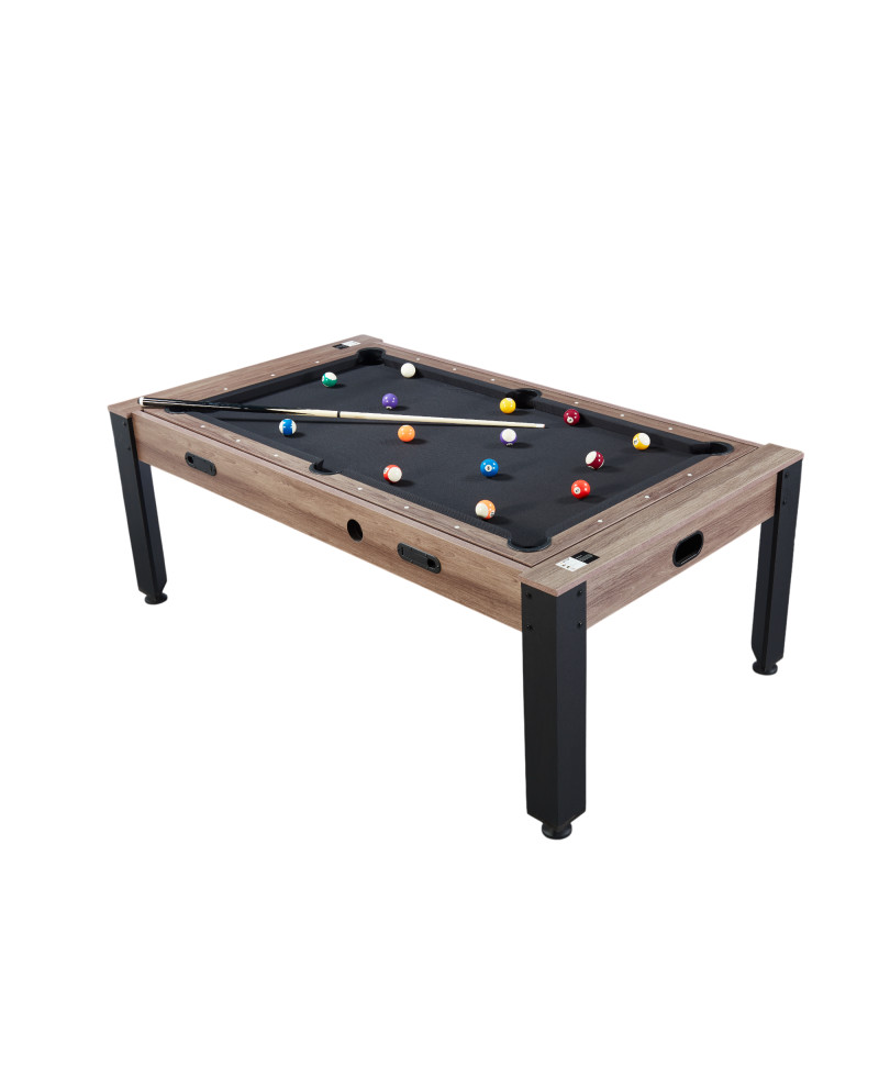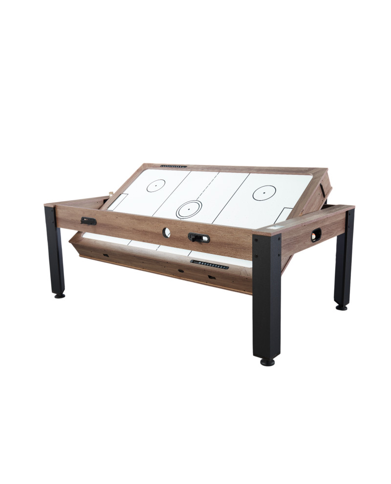 La table multi jeux rotative 7FT coloris industriel est la solution idéale pour ceux qui recherchent un meuble à la fois polyvalent, robuste et design. Véritable 4 en 1, elle combine billard américain, air hockey électrique, ping-pong et table à manger, pour répondre à toutes vos envies de loisirs et de convivialité.