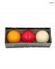 Ce jeu de billes Carambole de diamètre 61.5mm se compose d'une bille blanche, d'une bille jaune et d'une bille rouge.