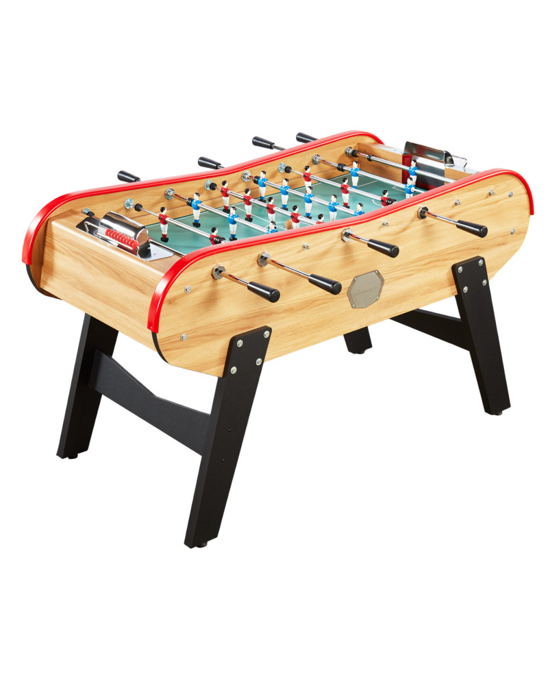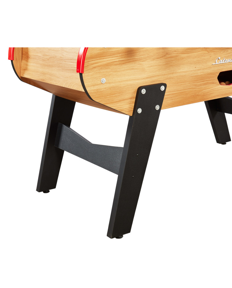 La caisse est en MDF mélaminé bois clair (hêtre) pour un style vintage. Les pieds alourdis et réglables assurent une stabilité parfaite, même pour les adultes. Avec un poids total de près de 70 kg, le Sportivo est conçu pour résister aux parties endiablées tout en offrant un confort optimal.