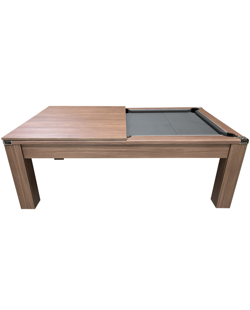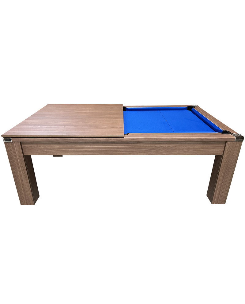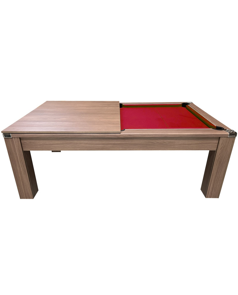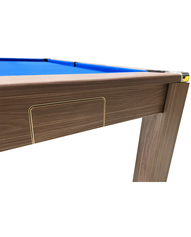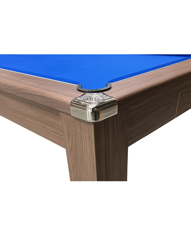 De dimension standard 2.10m, le billard London se convertit en table et vous permettra d'accueillir 8 personnes. Vous apprécierez son esthétisme soigné avec des angles métalliques chromés et des moulures sur les pieds qui sont munis de vérins pour pouvoir ajuster la hauteur de votre billard. De plus, ce modèle possède une descente de billes centralisée.