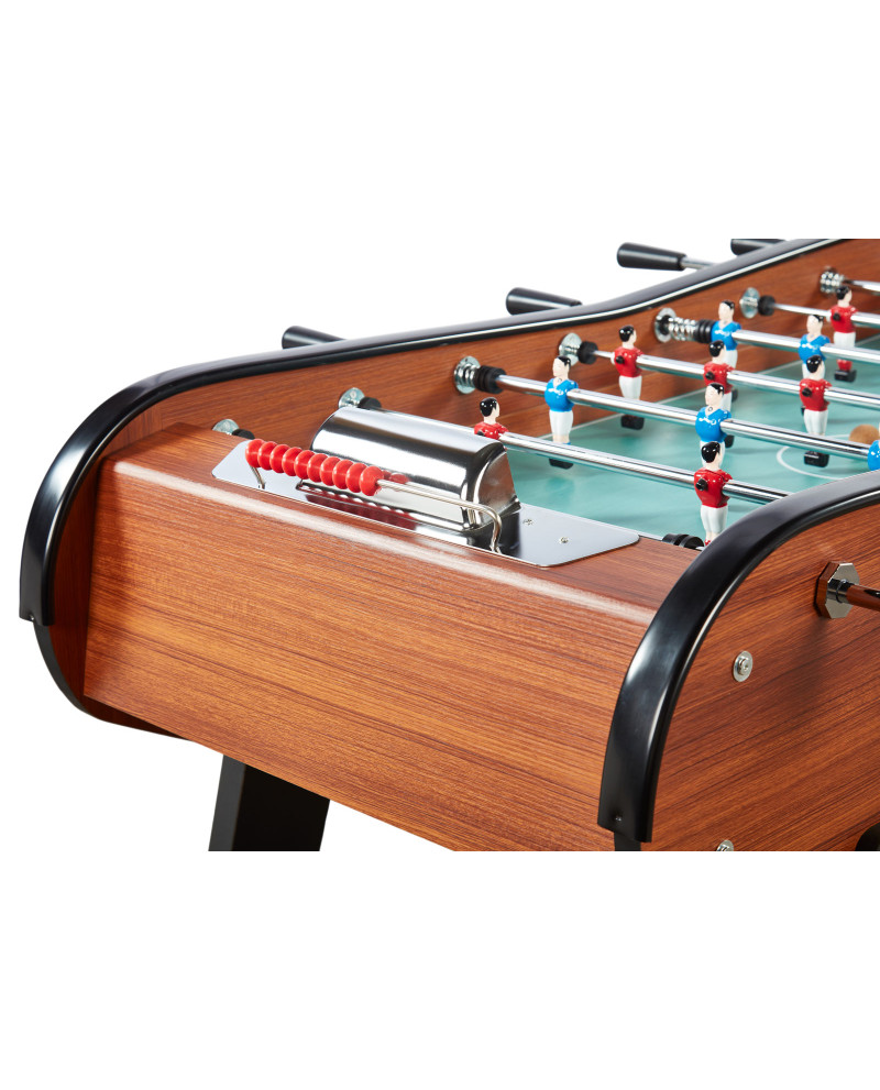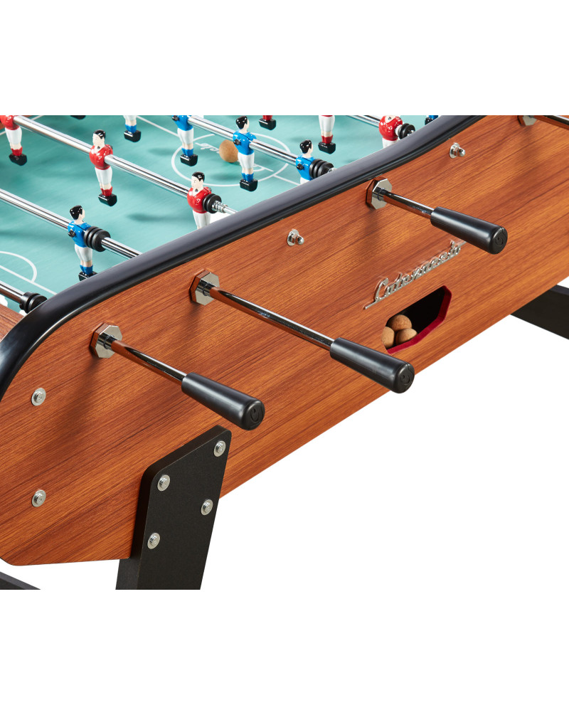 Le baby-foot bois foncé Sportivo offre les sensations authentiques des tables traditionnelles, tout en restant accessible :